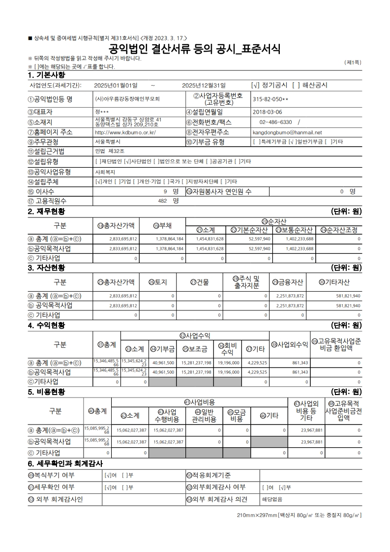 2025년 연간 기부금 모금액 및 활용실적 명세서/공인법인 결산서류 등의 공시